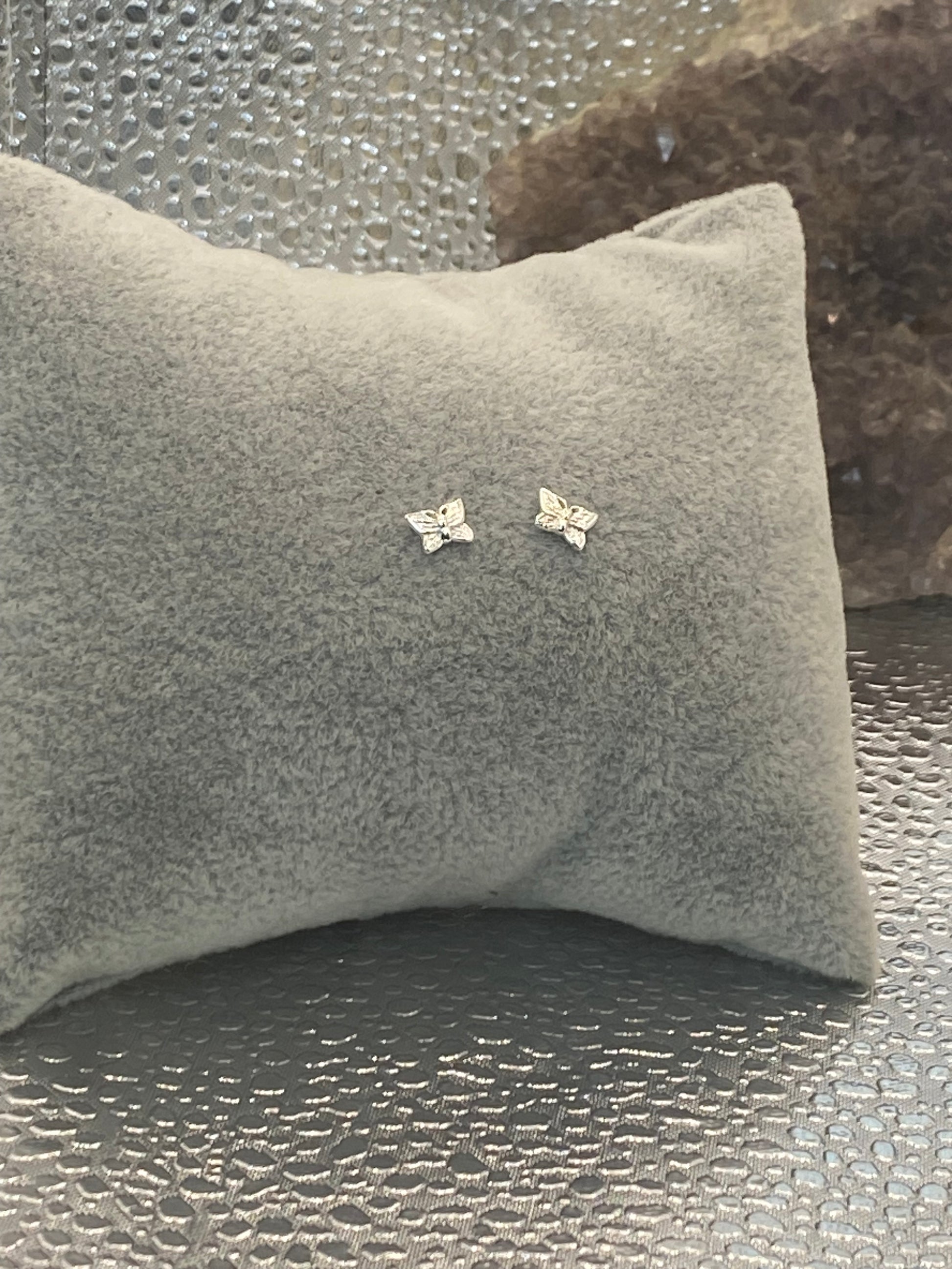 Delicate butterfly studs crafted from 925 sterling silver with a brilliant high-polish finish. These petite beauties measure 4.3mm in height and 6.3mm in width, making them the perfect everyday sparkle. At just 1.0mm thick, they're lightweight and comfortable for all-day wear. A whimsical touch that brings a flutter of elegance to any look.