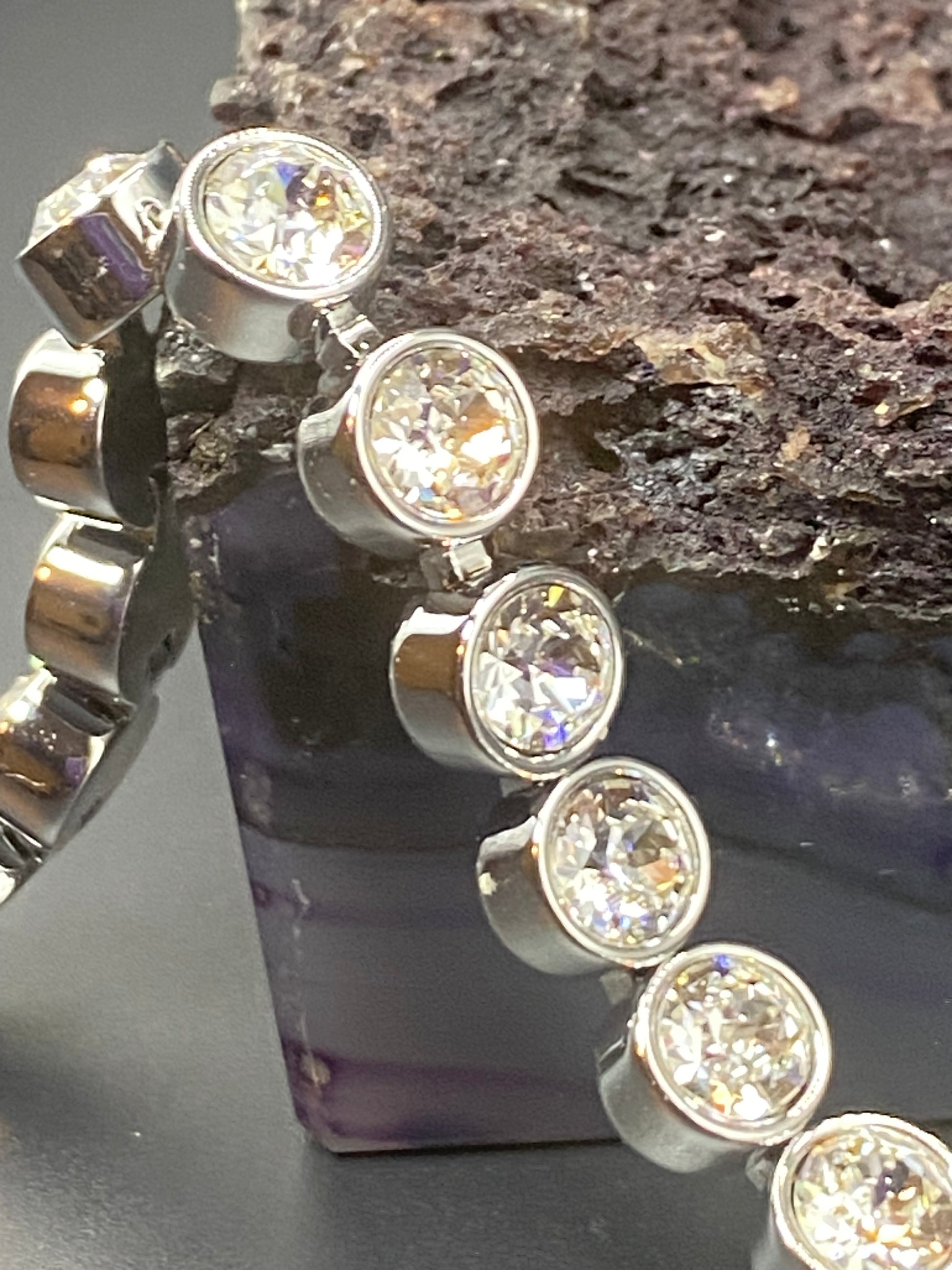 Crystal Bracelet: Elevate your look with this stunning Swarovski crystal bracelet! Designed with a delicate chain and a secure lobster claw clasp, this bracelet measures 17 centimeters in length and is crafted with high-quality Rhodium metal. The dazzling crystals add a touch of glamour to any outfit, making it the perfect accessory for any occasion. Get ready to shine and make a bold statement with this timeless piece.